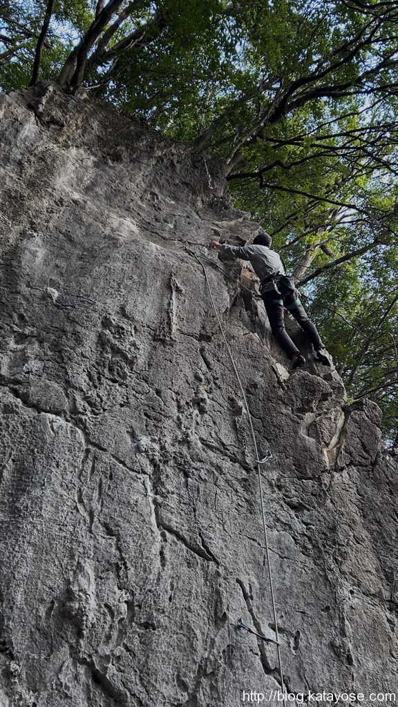 どうやってもしっくり来ねぇ3ピン目クリップまでのムーブ、これだろうってぇムーブでクリップまで繋がるけどあのホールドであの傾斜でムーブを起こすと岩から剥がれそうになっちまう。