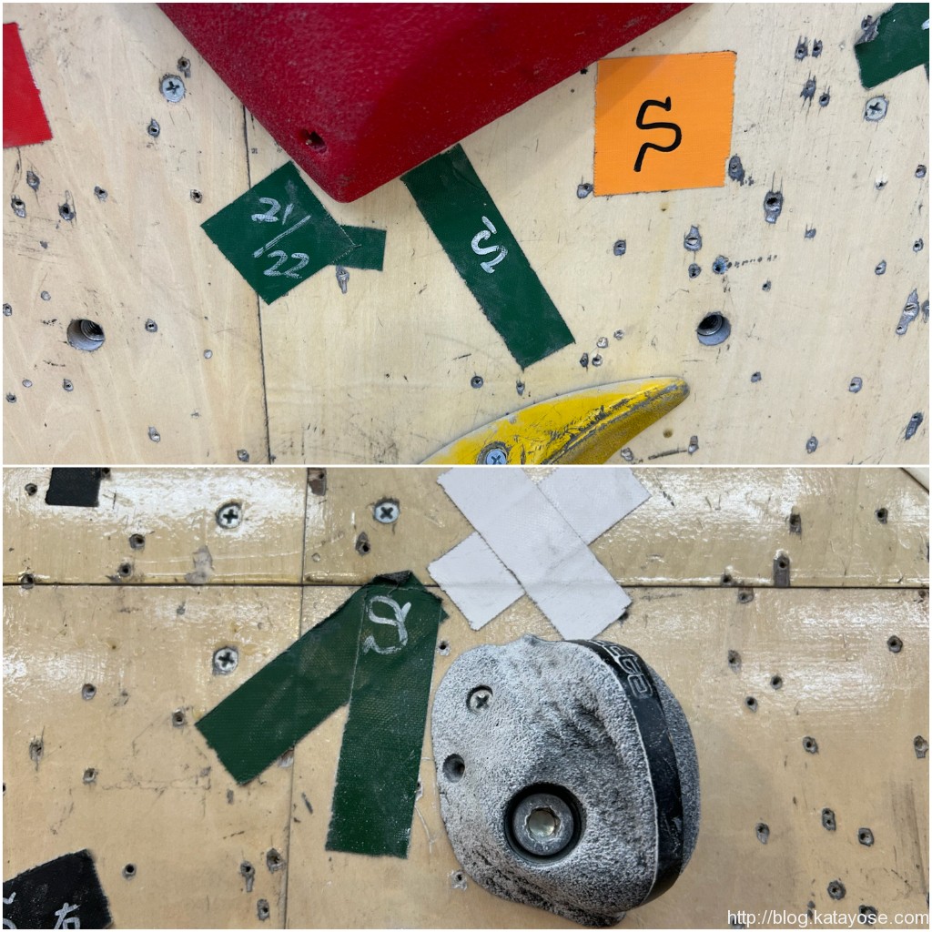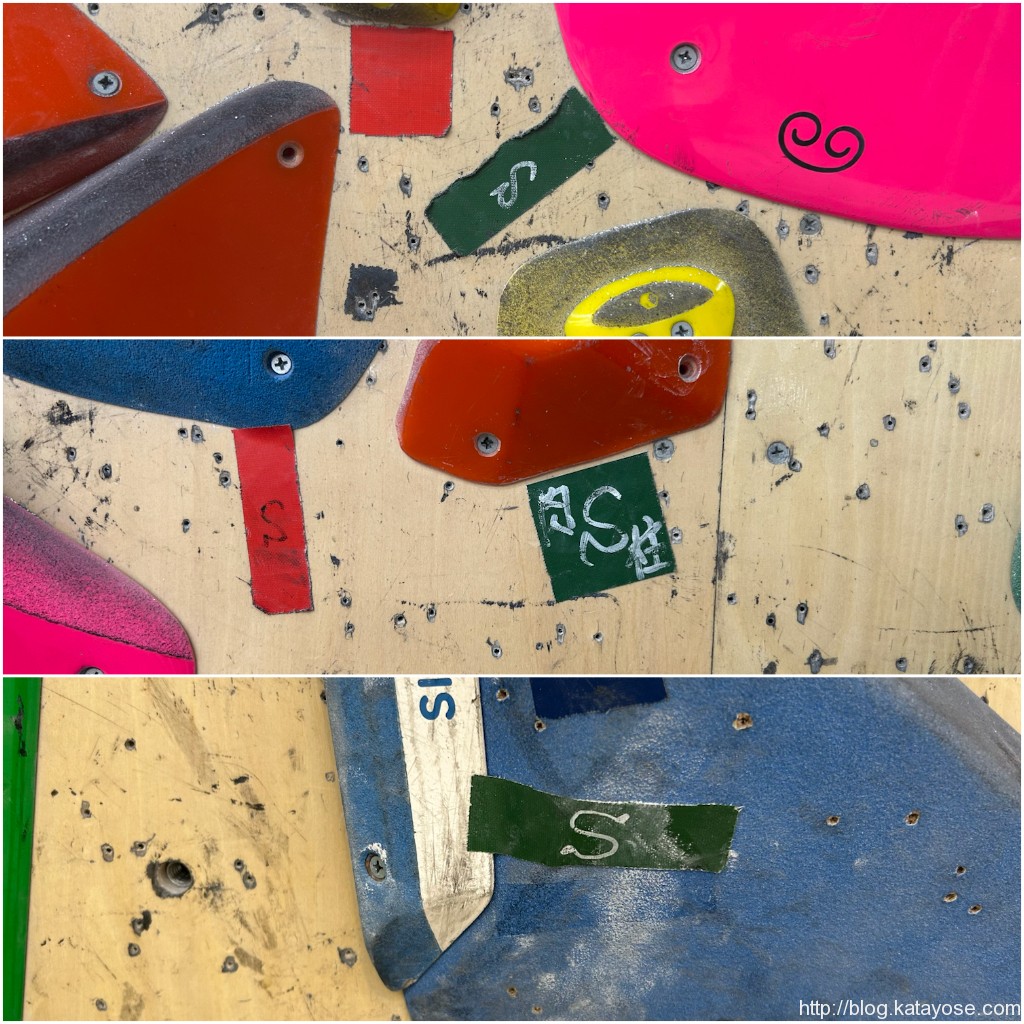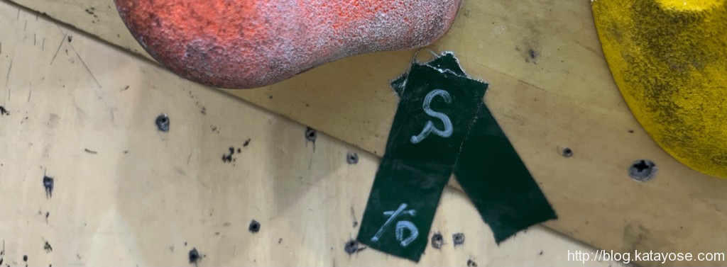違う壁に移って、謎の出だしな課題。店長に「あれピタっとスタートできねぇの?」ってぇ聞いたら「あれピタっとできないっす」ってぇ回答もらっちまったので割り切ってトライ。滑るヒールもホールド取ったら面に踏み替えたら精度があがってクリア。